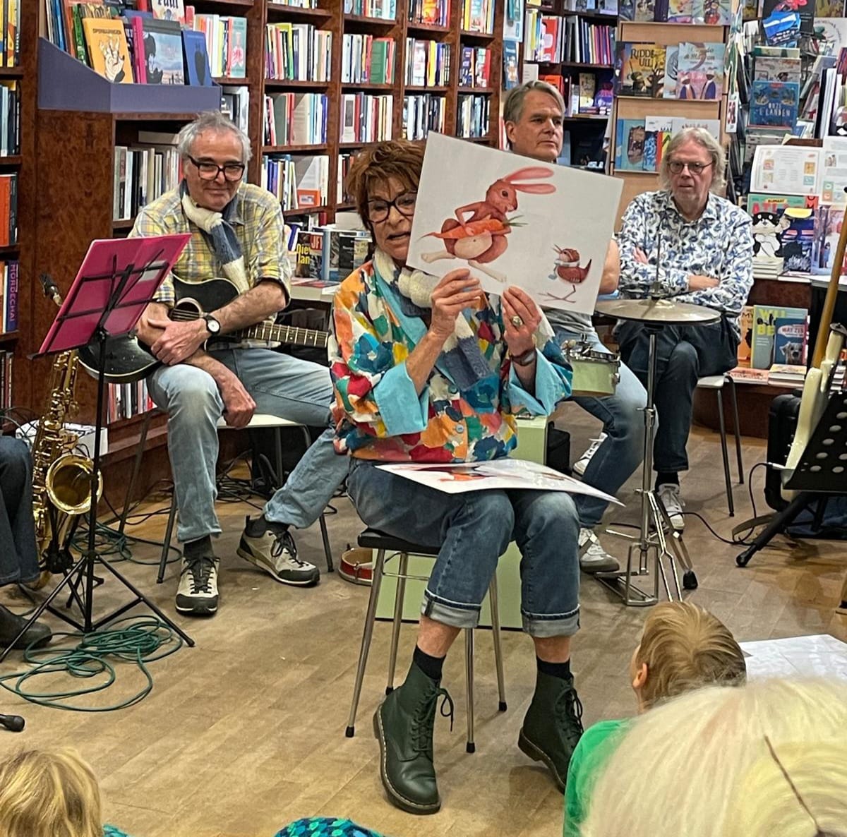 De boekpresentatie "Klein Jantje weet het" bij boekhandel Blankenvoort was een groot muzikaal voorleesfeest. Na het voorlezen mochten de kinderen lekker swingen én meezingen met de band Flapuit!